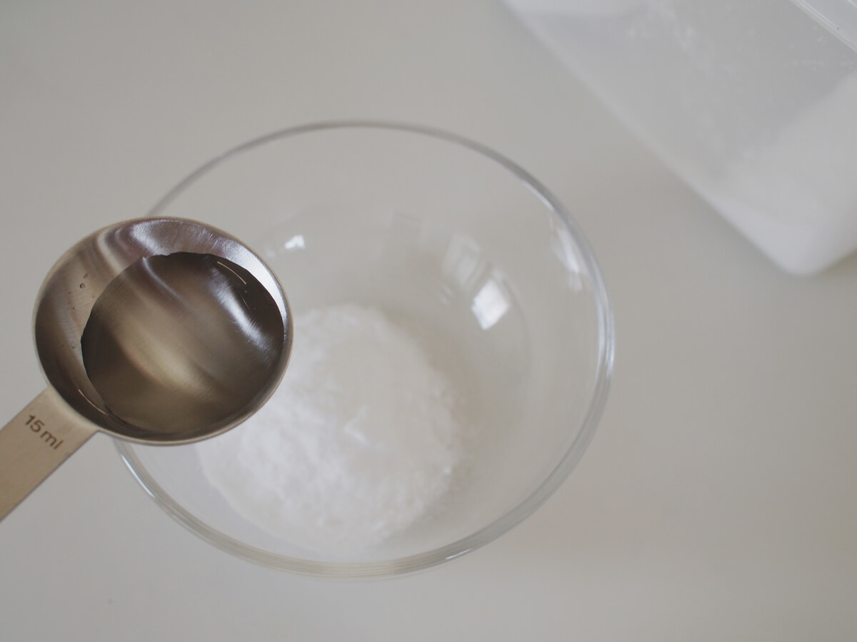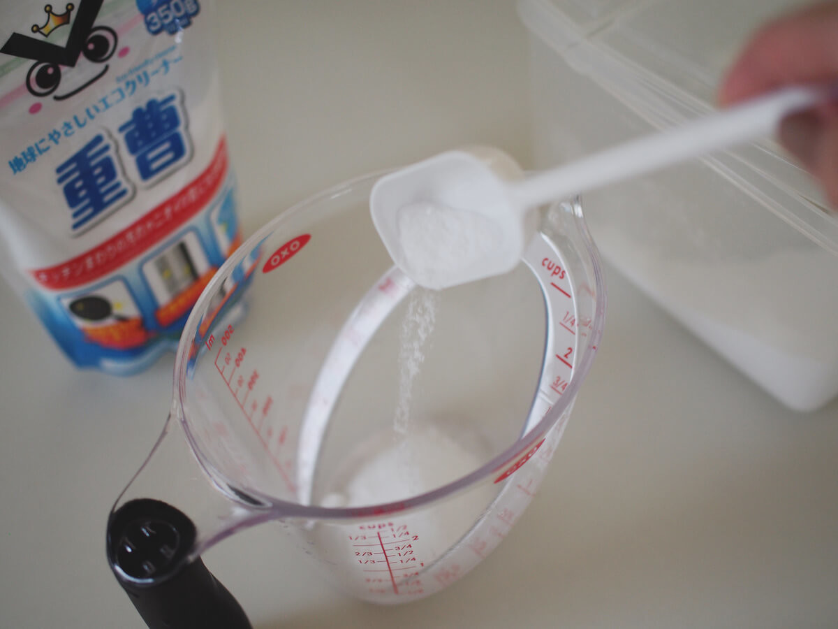 重曹は水に溶けにくいので粒子が残り、その粒子が研磨効果を発揮します。