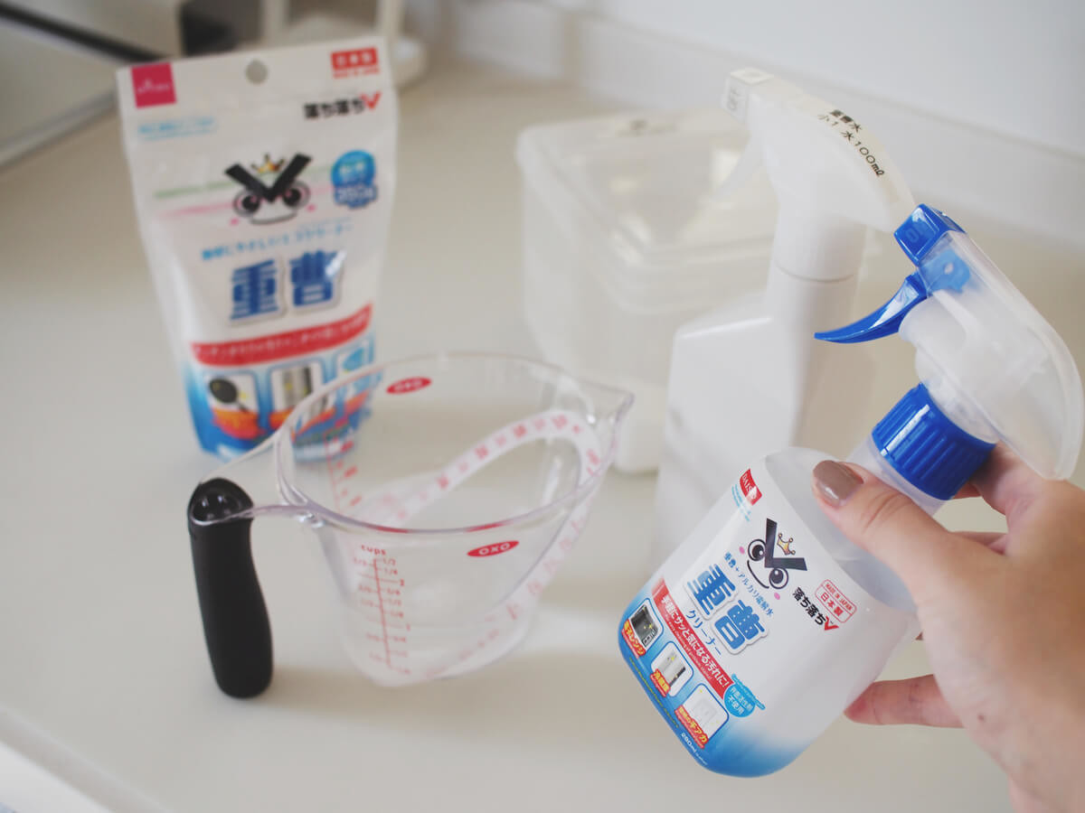 (クエン酸小さじ1を水1カップで溶かしたもの。100円ショップのクエン酸スプレーを使っても◎)