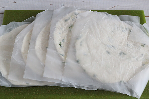 台湾産薄焼き餅は、ほうれん草入りもありますよ。
