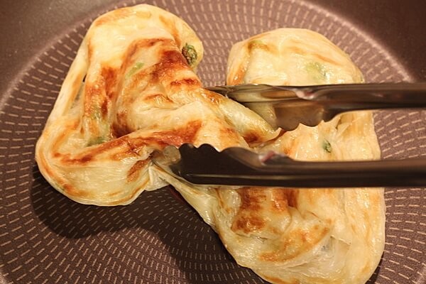 そして、是非やって頂きたいのが、フライパンの上でトングを使って色々な方向からつかみ、ふわっとさせる作業。