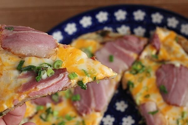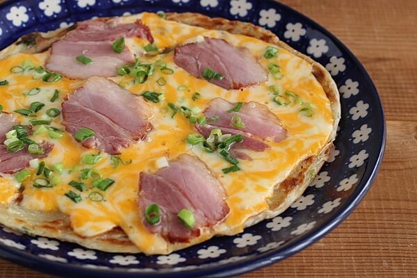 今回はベーコンとチーズをのせてピッツア風にしてみました。