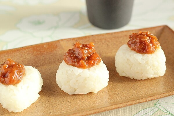ご飯を小さく握って肉みそをのせれば、立派なオツマミに!
