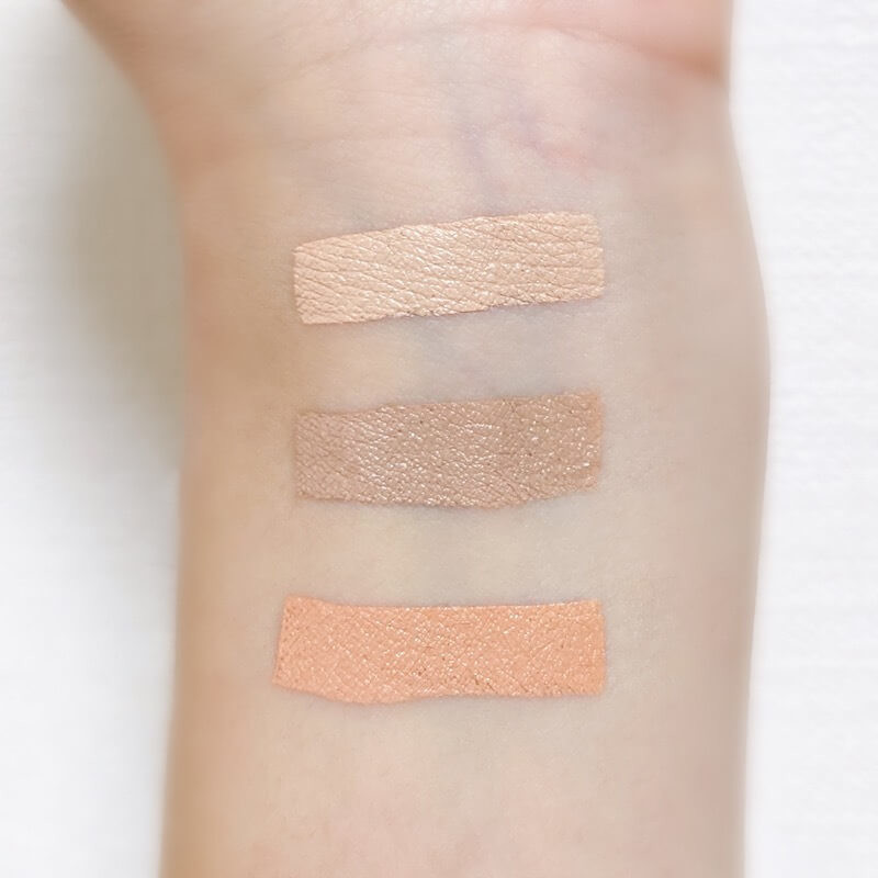 上記写真は、上から「01:ナチュラルベージュ」「02:ベージュオークル」「03:アプリコット」です。