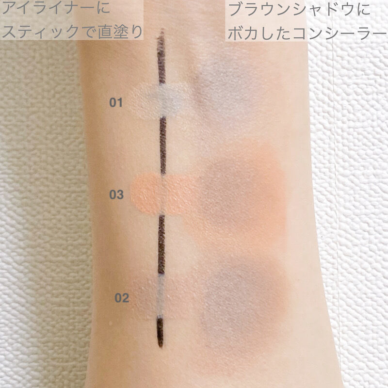 どれくらいカバー力があるのかを検証してみたところ、ブラックのアイライナーもほとんどしっかりと消えるくらいのカバー力です。