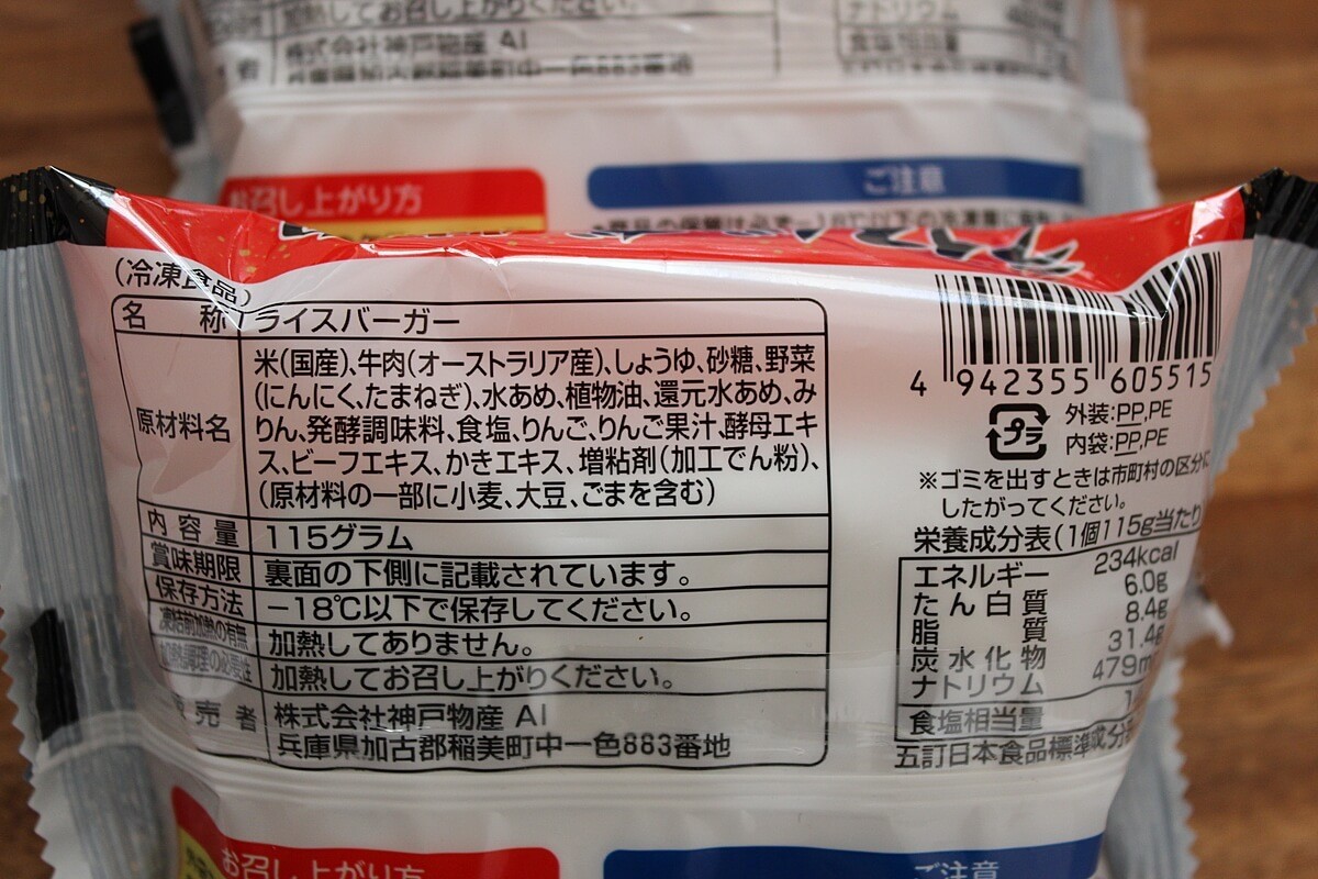 「冷凍食品 国産米100パーセント使用 ライスバーガー」