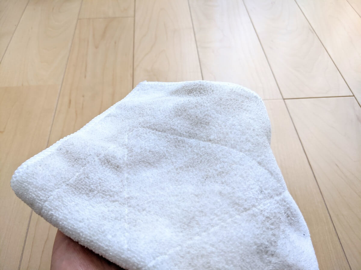 ぱっと見はきれいに見える我が家のフローリング。 でも洗剤を使って雑巾がけしてみると……。この通り、雑巾がすぐに黒くなってしまいました。 気付かないうちに結構汚れていたんですね(汗)。