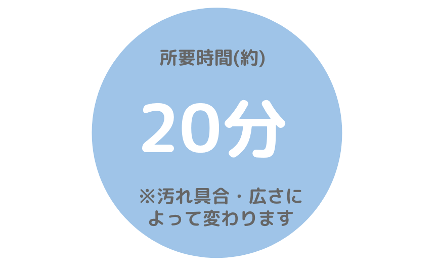 部屋の広さや汚れ具合にもよりますが、我が家の場合は10畳ほどの広さで約20分かかりました。