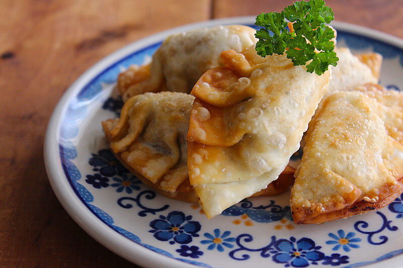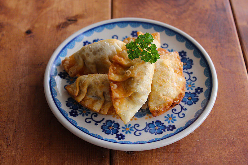 あとは、タネを皮で包み、揚げ油でこんがり揚げるだけ。