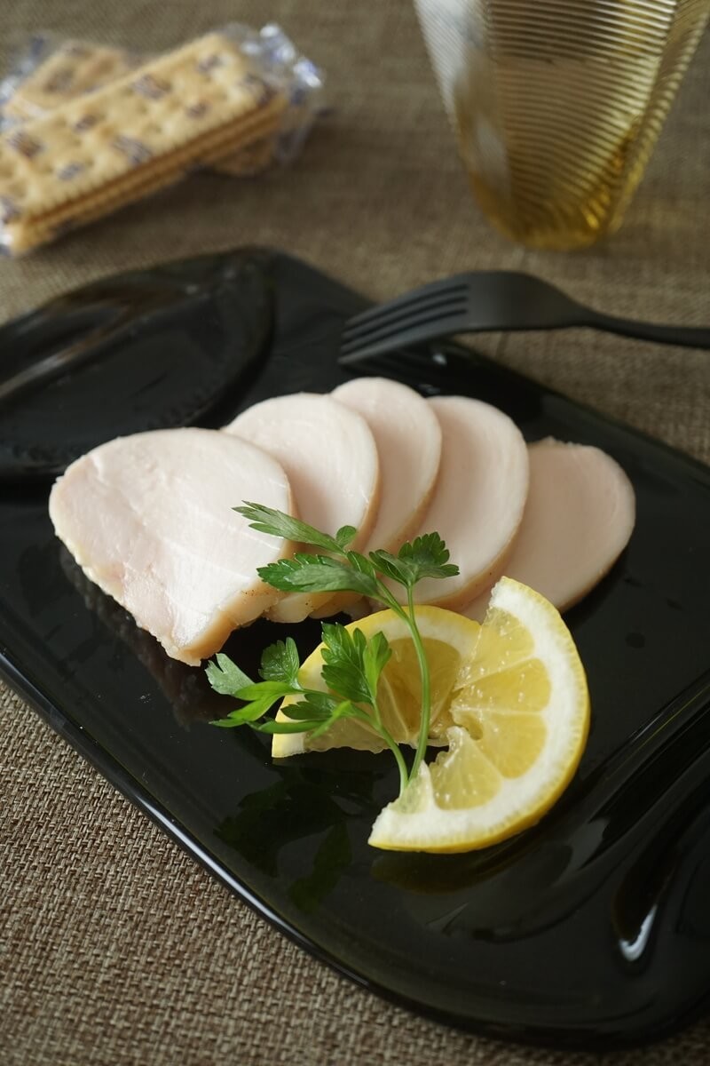 燻製風味ソルトを使った料理で一番のおすすめは鶏ハムです。