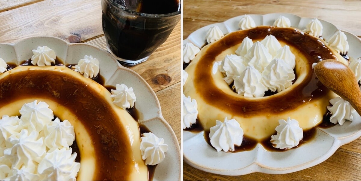 こちらはプリンミクスで作った大きなプリンです。プリンの時は表面がボコボコにならずにきれいに外すことが出来ました。