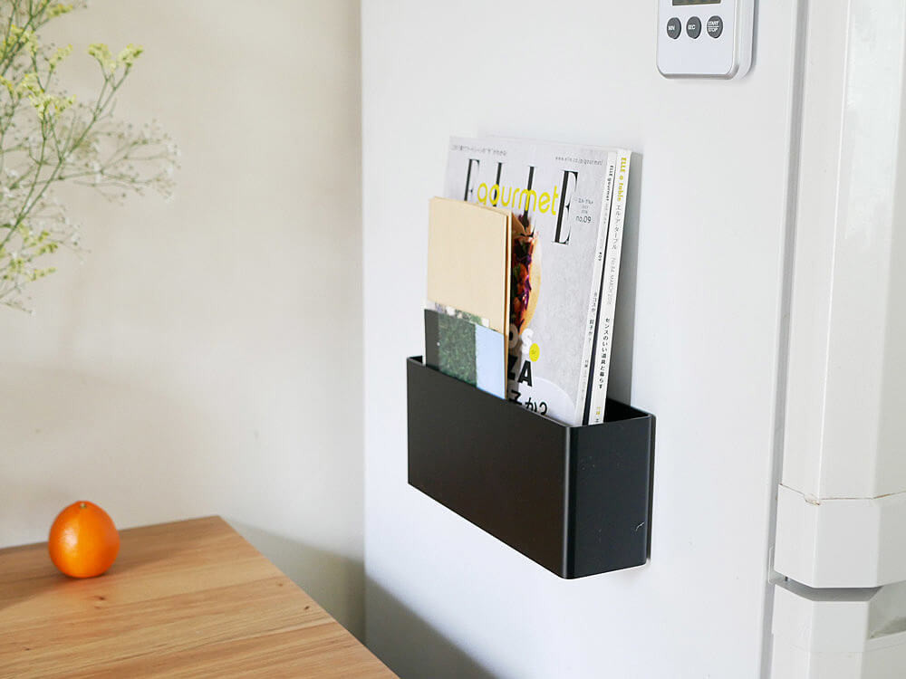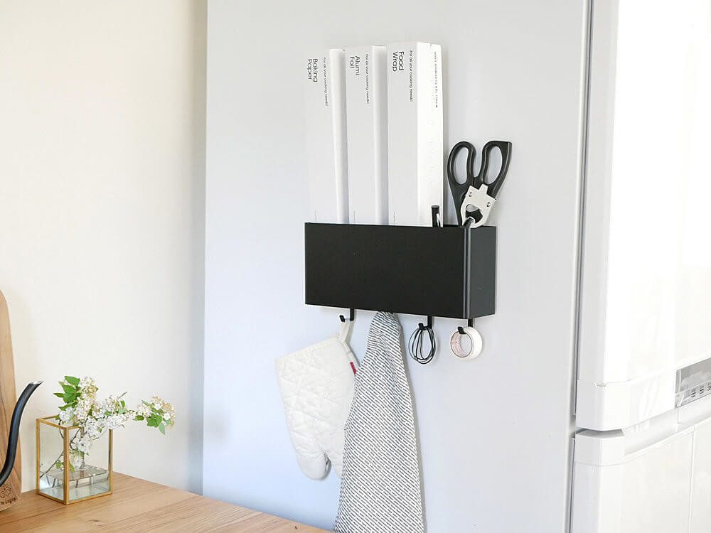 マグネットが付く冷蔵庫や壁面に簡単取り付け、散らかりがちなキッチンやバスルーム用品を一気にまとめて収納できるケースをご紹介します。