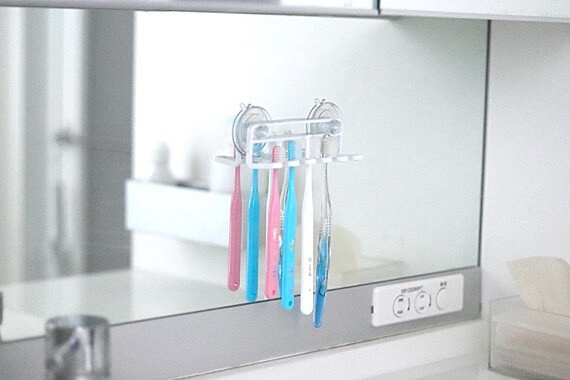 最後は歯ブラシなんですが、これは浮かせてる人多いかもしれませんね。今は吸盤でくっつけるタイプのホルダーがいっぱい出てます。