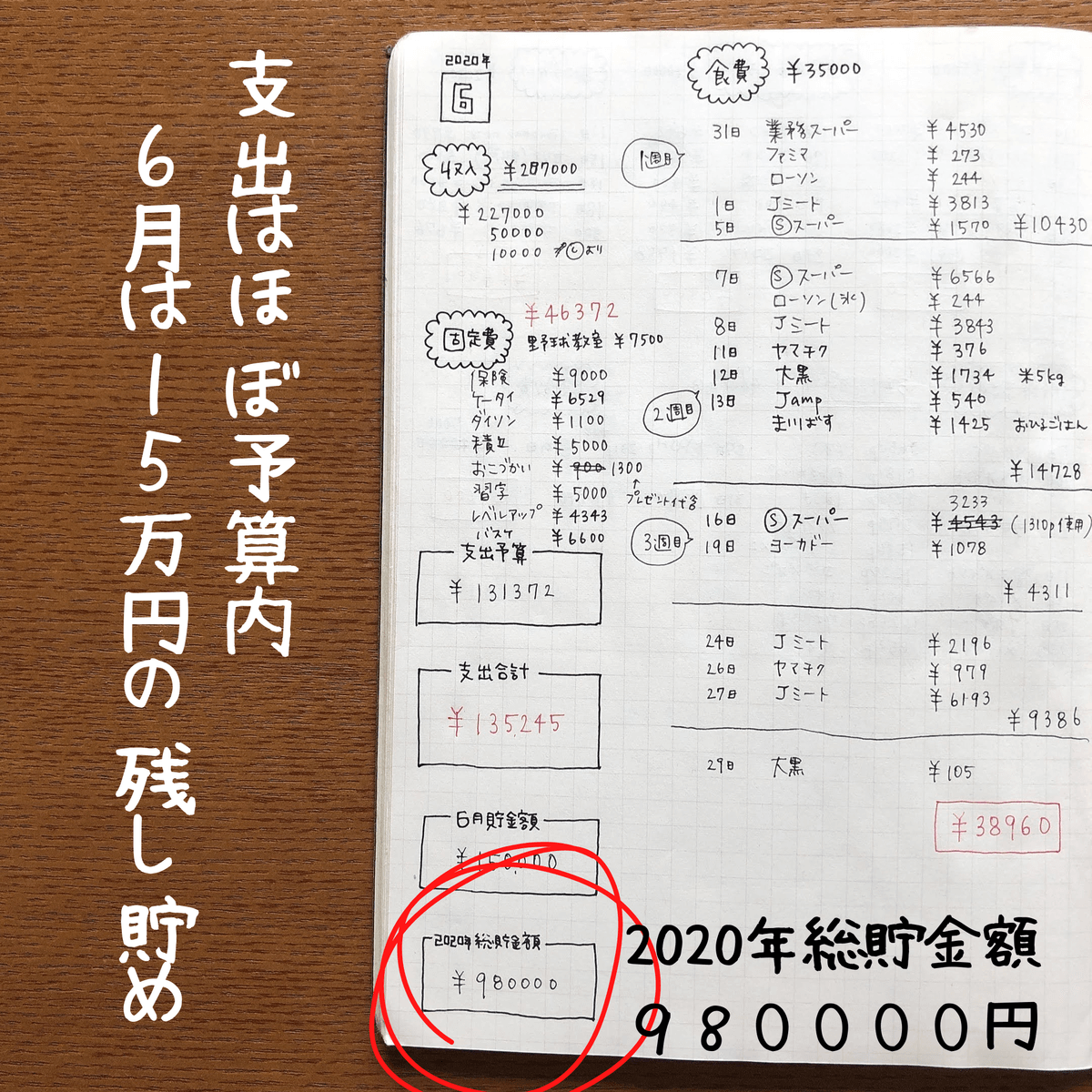 毎月15万円!多い時で22万円の残し貯めが出来た月もあります!
