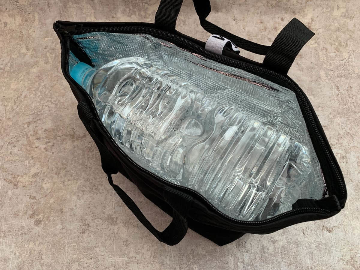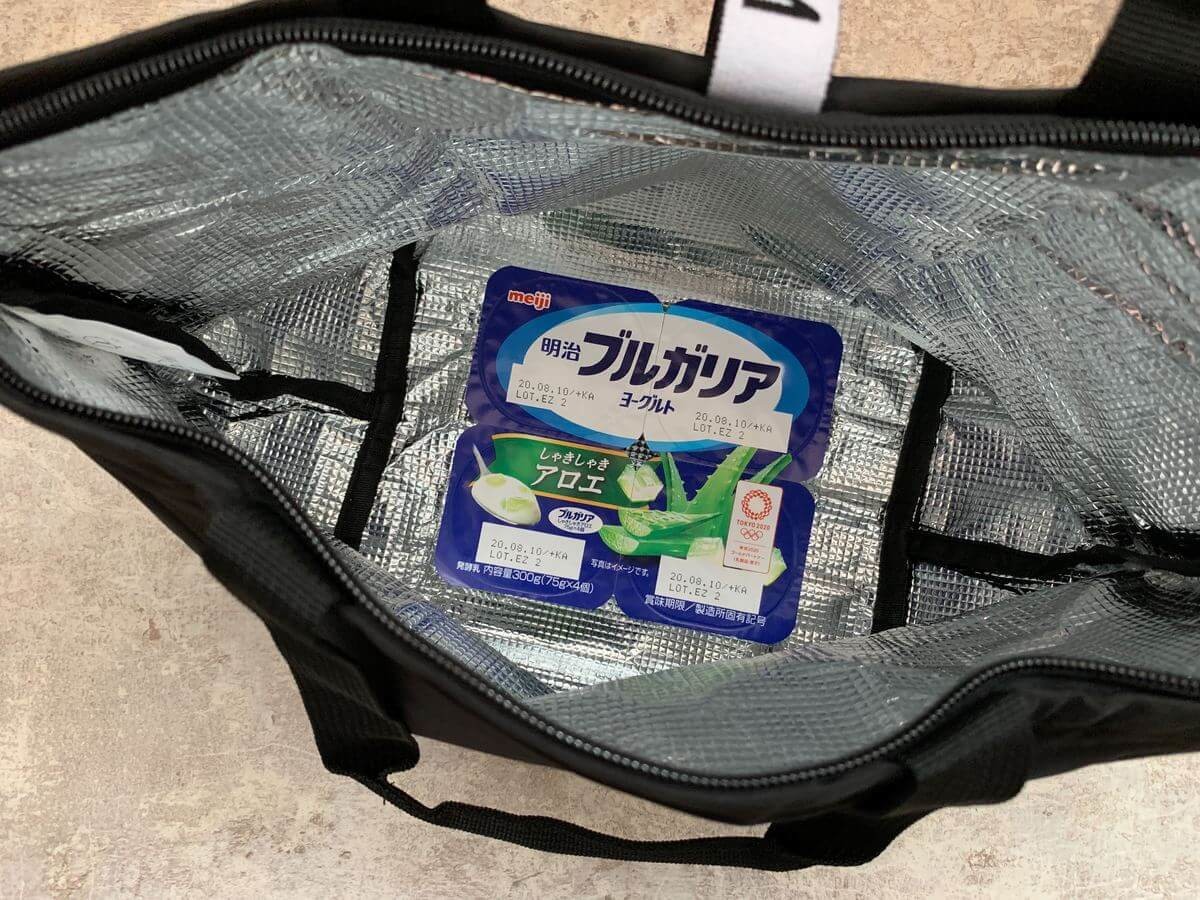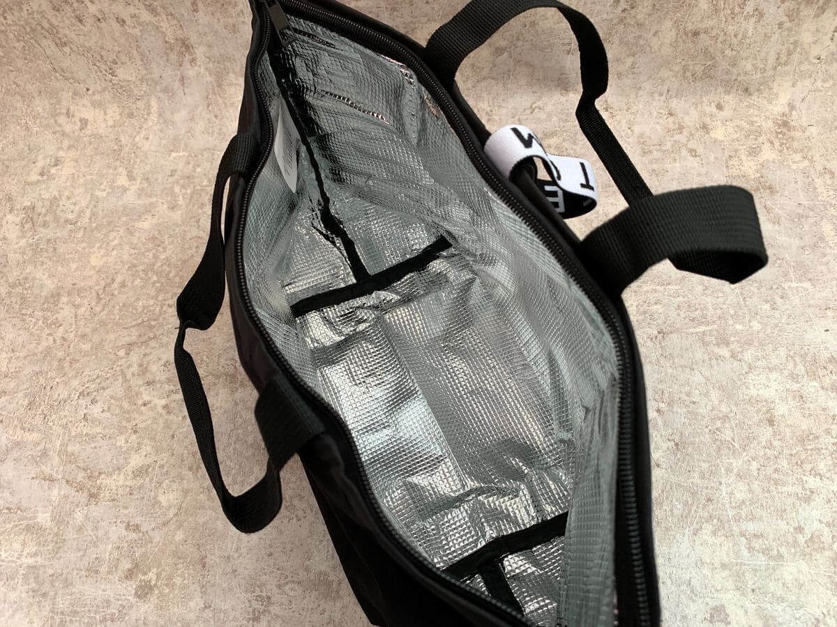内側がアルミシート仕様なので、ある程度保冷してくれます。簡易保冷バッグなので、長時間食品を入れたままにはしないようにしましょう。