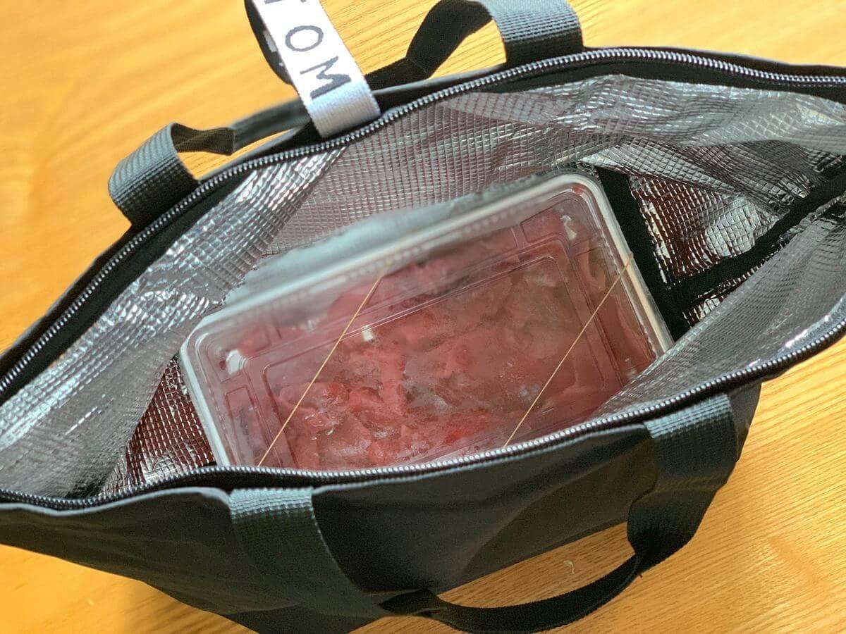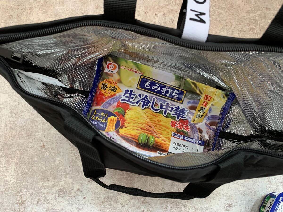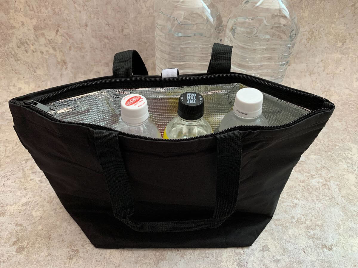 内側がアルミシート仕様なので、ある程度保冷してくれます。簡易保冷バッグなので、長時間食品を入れたままにはしないようにしましょう。