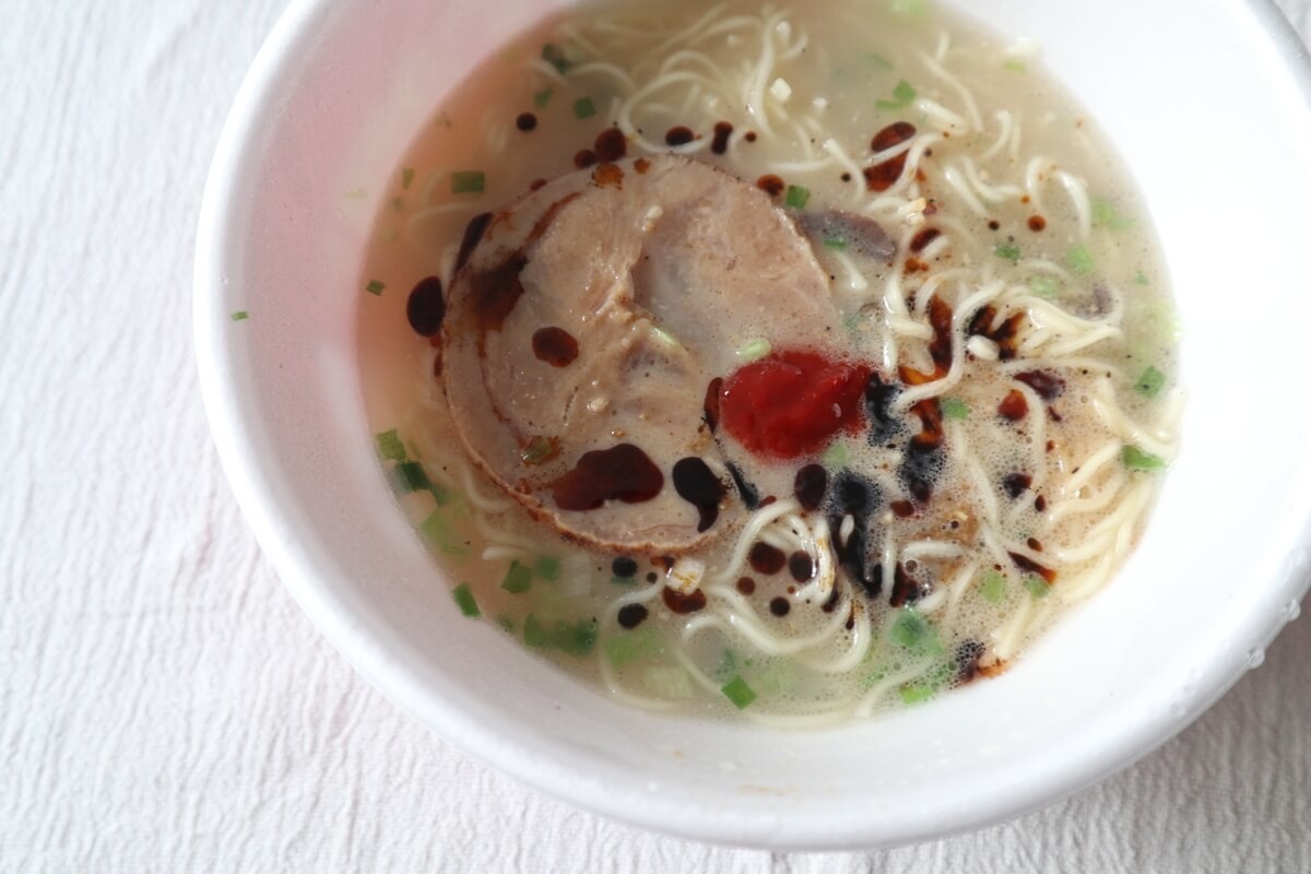 白濁のスープに黒香油が浮かんでいるのを見るとお店ぽさが増します。 香りは店舗で香るそれと同じ。