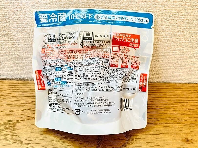 調理方法はレンジでチン、もしくは鍋でボイルです。調理時間が結構違いますね。今回は時短でレンジ調理を選びました。