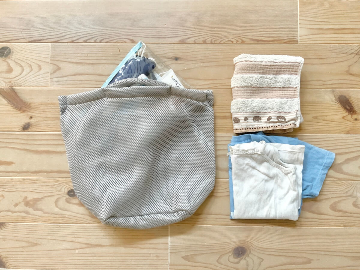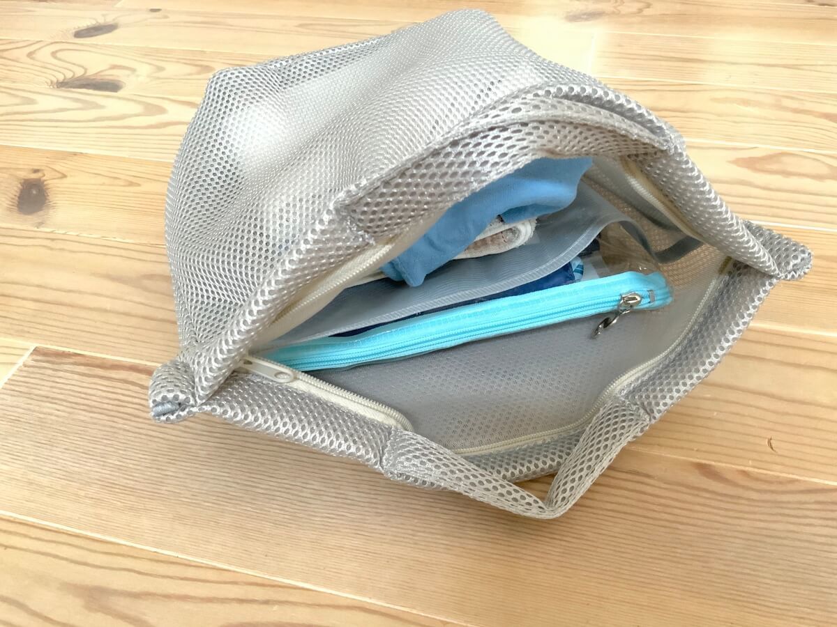 そして何より、シャンプーなどのポーチを取り出したら、そのままポイッと洗濯機に入れて洗うことができるんです。