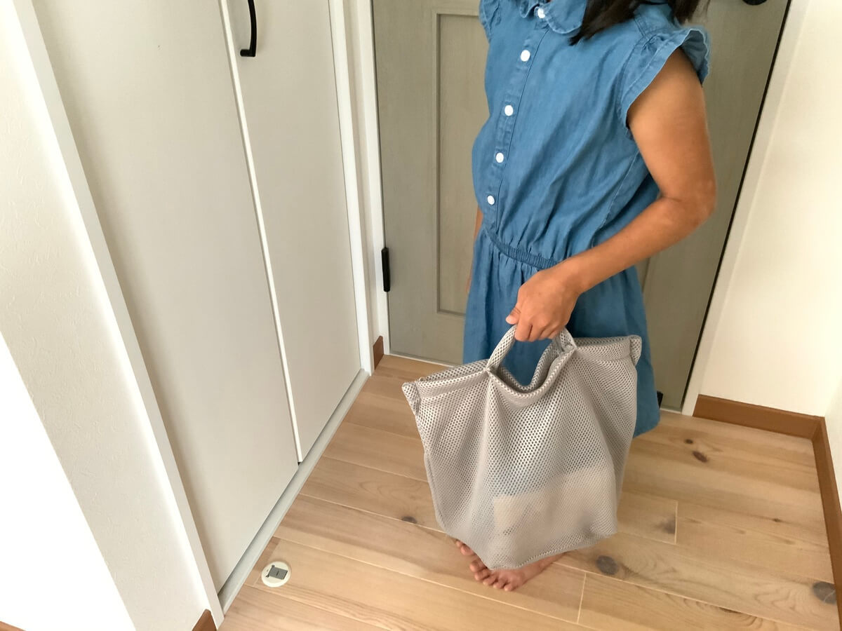 メッシュですが、中が透けにくいダブルメッシュになっているので、帰省や銭湯に行く際のお風呂バッグとしても使えます。