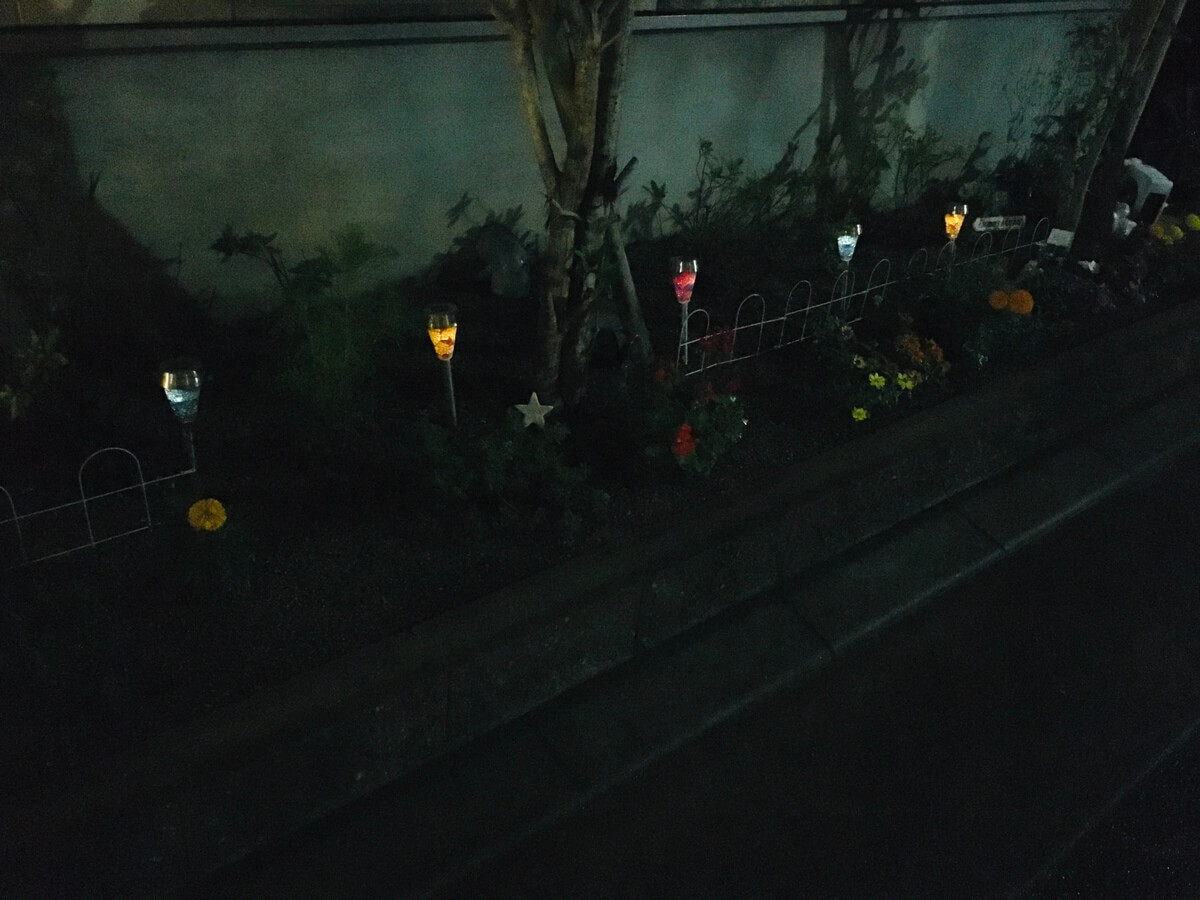 ソーラーライトは太陽光で充電され、夜は、100均とは思えないほど、しっかり光っています。