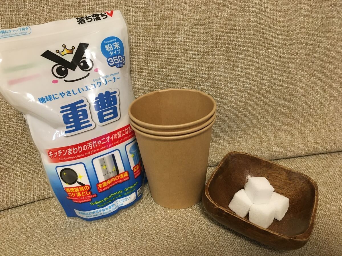 そこで役に立つのが100均でも売られている「重曹」「砂糖」「紙コップ」!