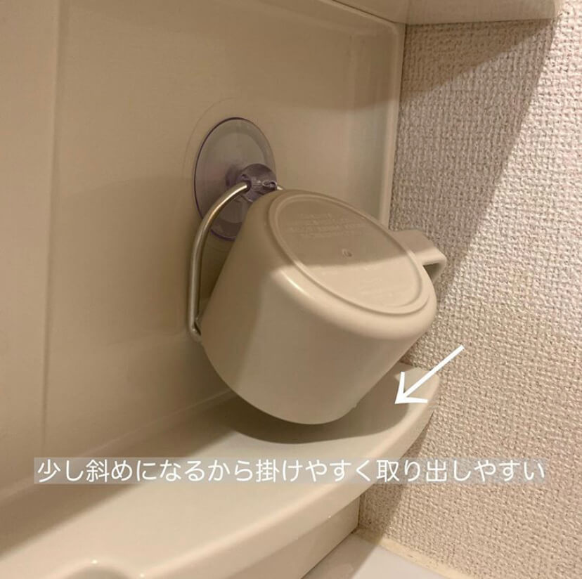 @maco_kurashiさんはこちらの石鹸置きをセリアで購入したそうです。付属している吸盤を反対にすることで、洗面台の下に貼り付けることができるそうですよ!