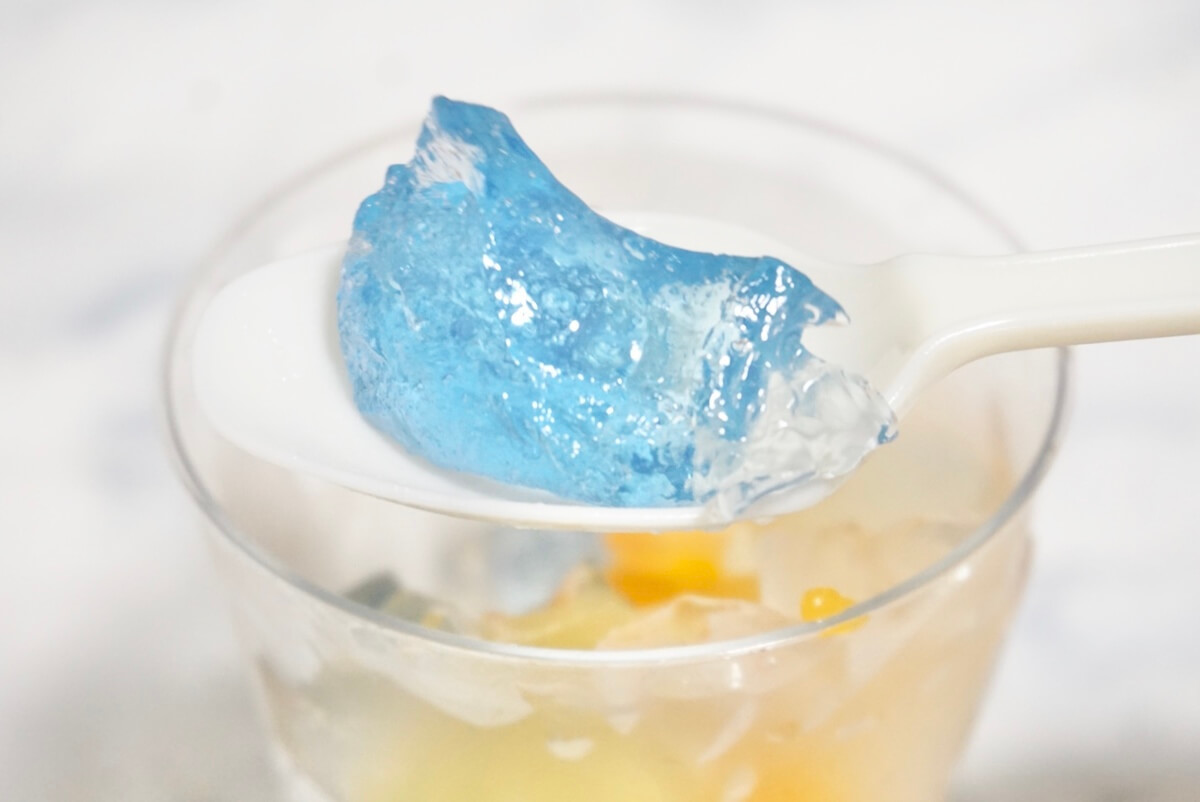 この青いラムネ風ゼリーは、シュワシュワ感はありませんが、しっかりと風味を感じられます。