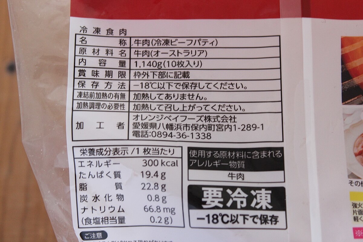 「オレンジベイフーズ 冷凍 ビーフパティ」