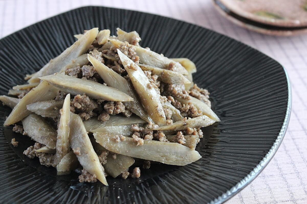 ごぼう1本と、ビーフパティ1枚を使用すれば、写真のような出来上がり量になります。