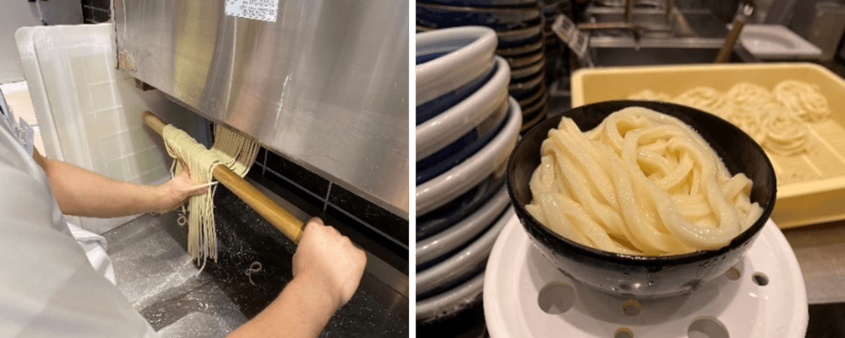 実は、うどんの“だし”も丁寧に店内でとっているのだそうです!1日に6回以上、どの時間にお客様が来店してもいつでも豊かな香りが楽しめるように、とってから2時間以上の作り置きはしていないそうです。