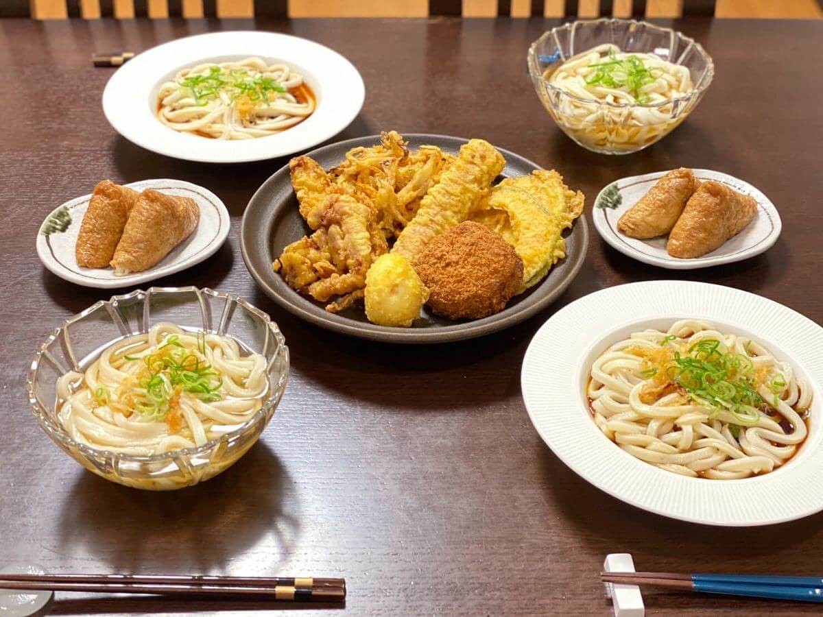 うどんに加え、天ぷらやいなりまでついて、3品を食卓に出せるのに4人前で2,000円。これは本当におトクです!