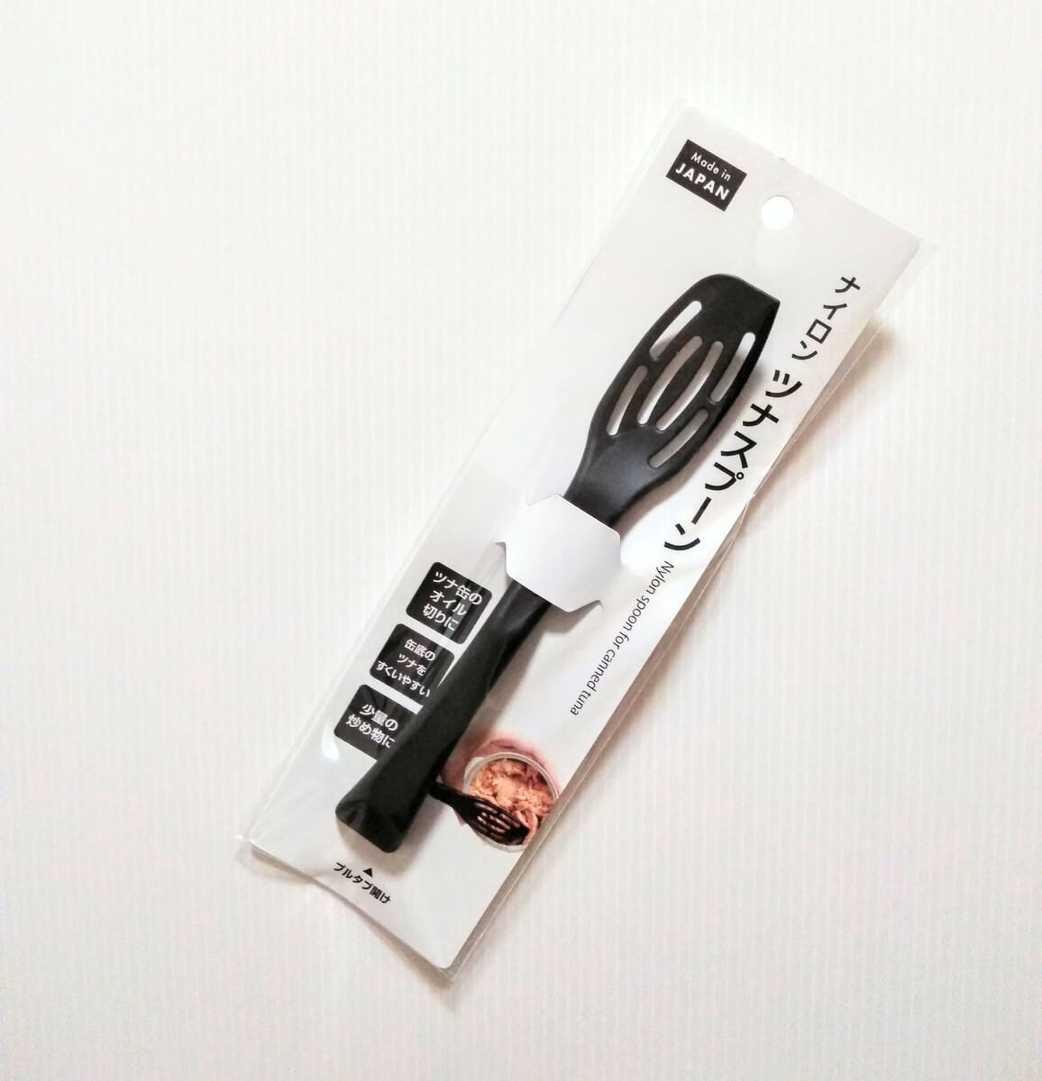 ツナ缶のオイル切り用スプーンですが、少量の炒め物にも使えるみたいです。