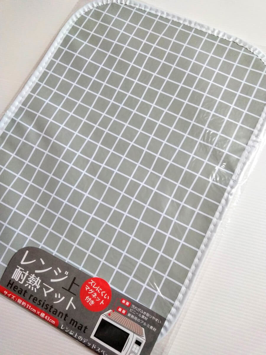 10年以上使ってるこの耐熱マットが、汚れているし(しかも赤)、早く買い替えたかったのですが、100均にはモノトーンのがありそうでなかったから、販売されるのをずっと待ってました!