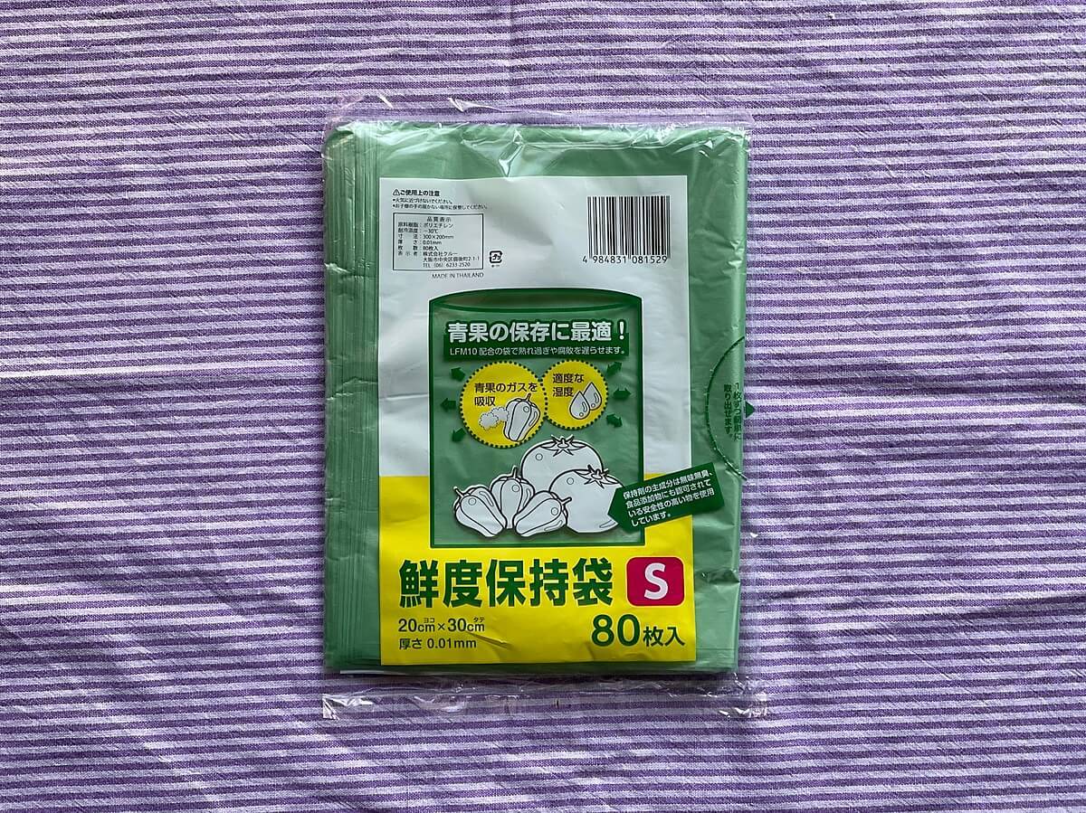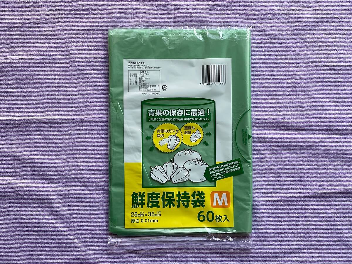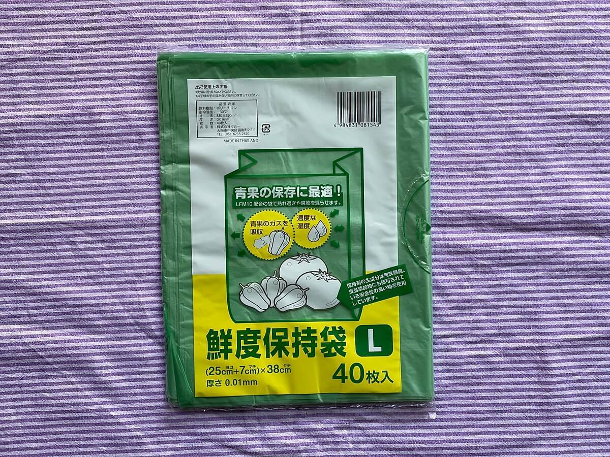 「鮮度保持袋」です。そのままなネーミングですよね(笑)。何の変哲もないこの鮮度保持袋ですが、これこそ食費節約の救世主なのです!