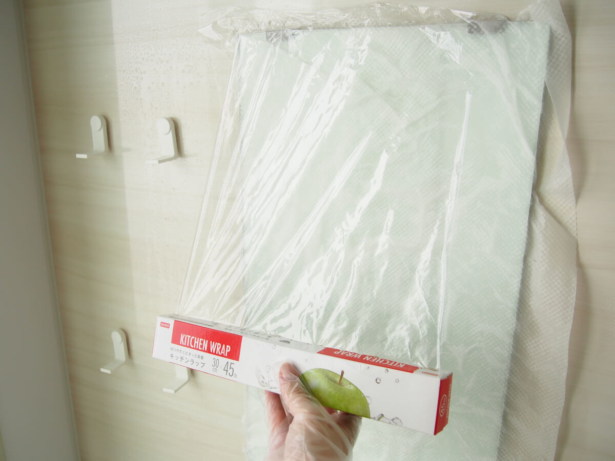 長時間置いた方が効果が出ますが、長時間置くと乾きやすいので、キッチンペーパーを貼り付けて、その上からラップをすると効果的!