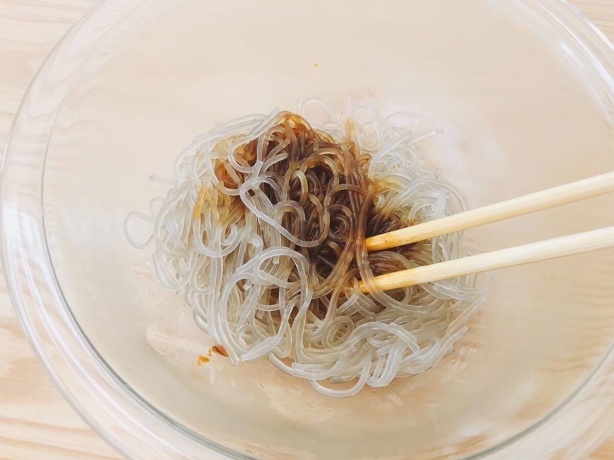 ④ ボウルに②の韓国春雨を入れて③のタレを絡める。