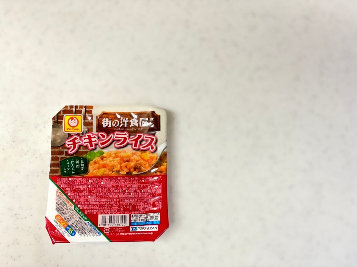 チキンライスは、パックごはんを使いました。ラーメンでおなじみの【マルちゃん】のパックごはんなので、安心の美味しさです♡