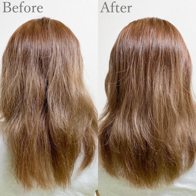 Afterの画像を見ていただくと分かる通り、まとまりも出て、ツヤ感もありますね。