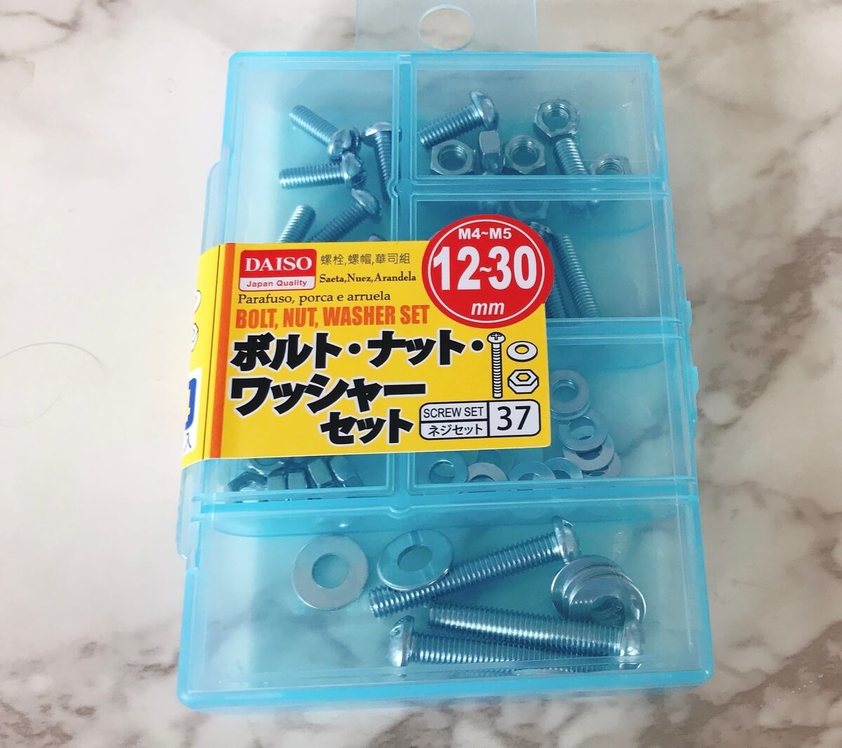 同じくナットもダイソーで購入したこちらのパックに入っていたものを使いました。ナットはM5サイズがぴったりでした。