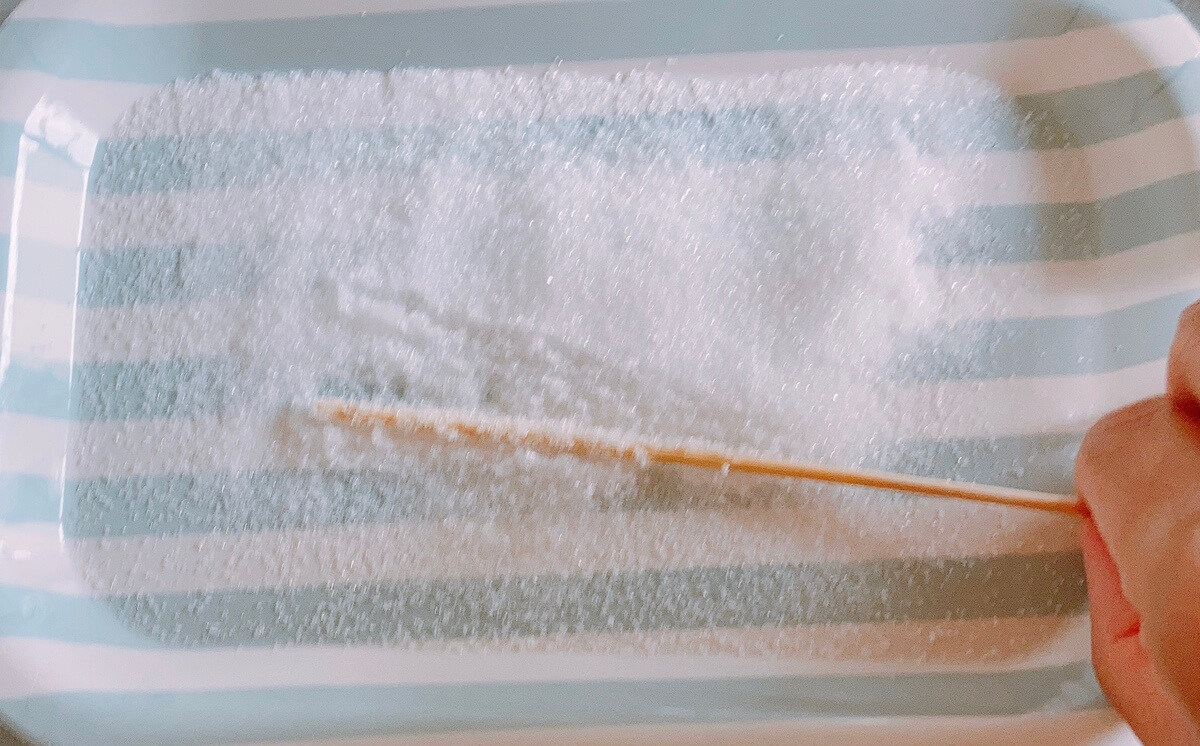 ポイントはまず、棒の周りの砂糖がしっかり乾いて棒に定着していることを確認すること!