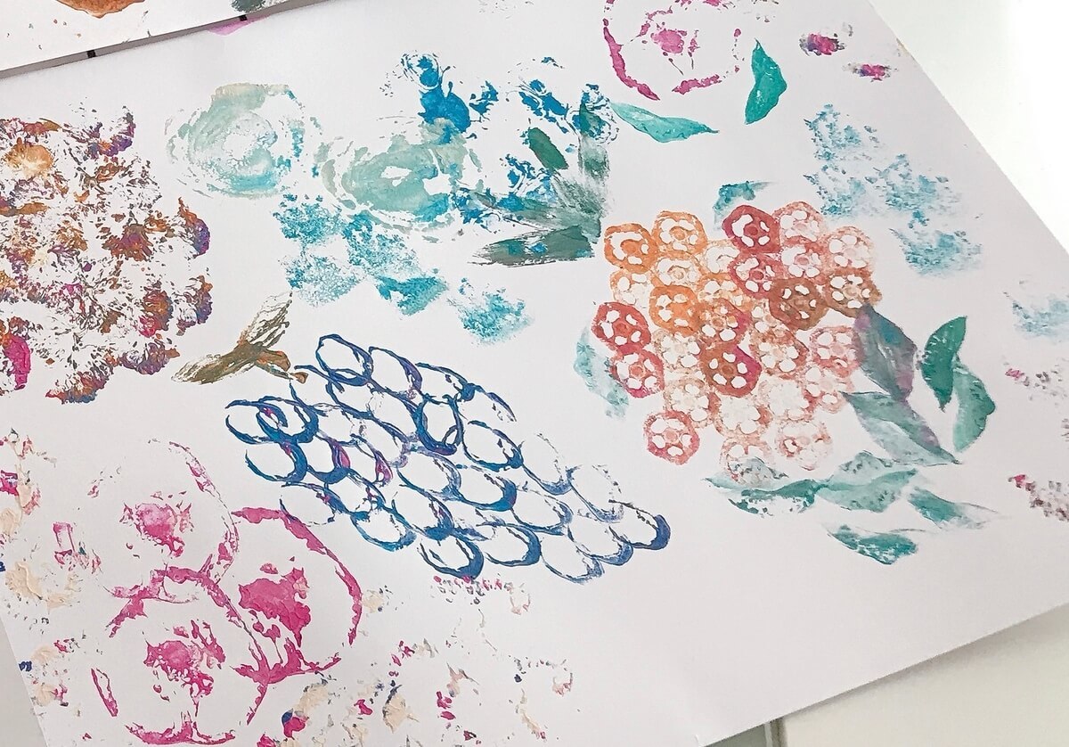 こちらの絵、実は野菜の切れ端に絵具を塗って押して描いたものなんです。