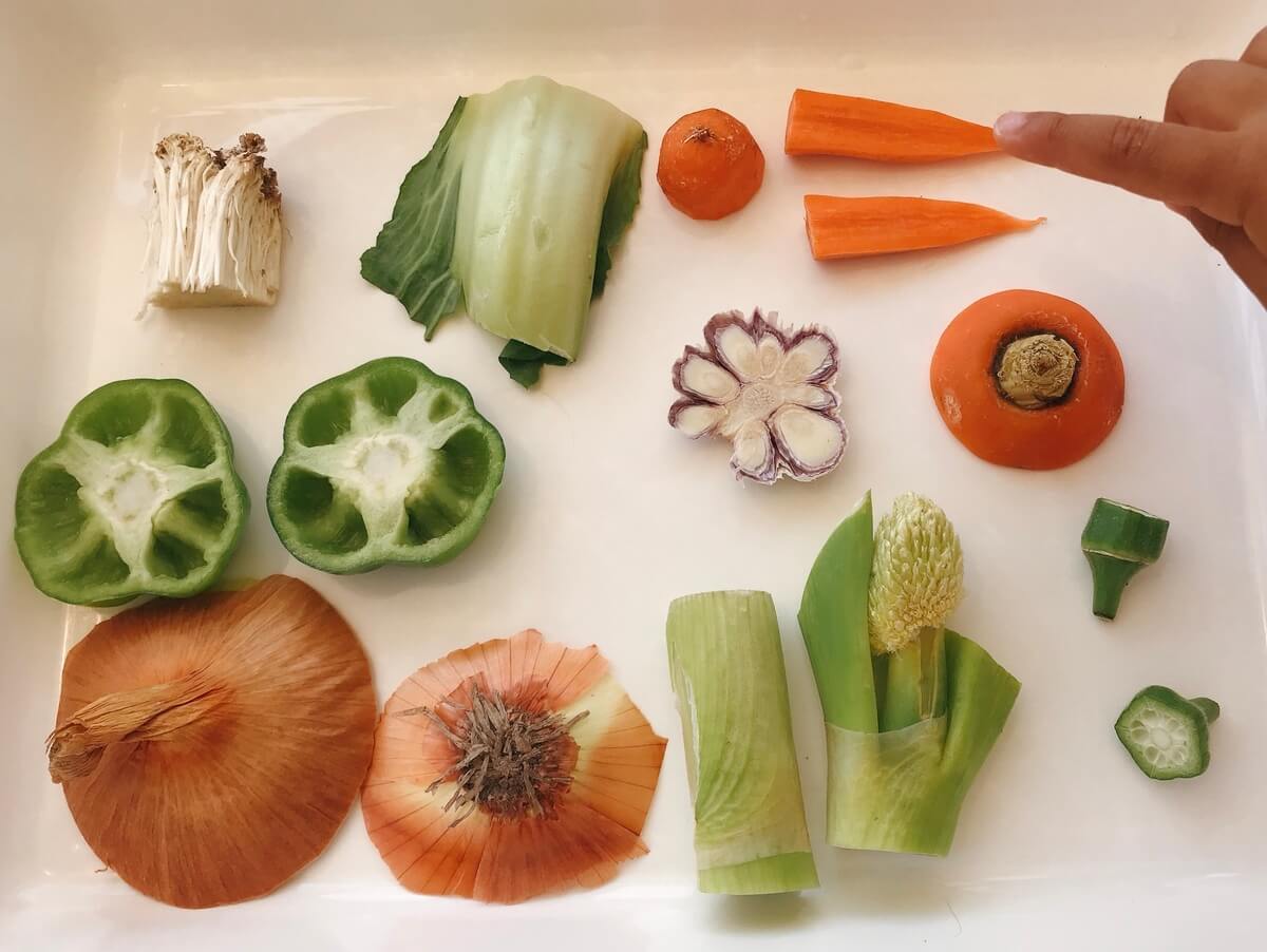 月齢の低い子どもはアートとして楽しむことができますし、小学生くらいであれば縦に切ったり斜めに切ったり、切り方によって断面図の形も変わることを知るいい実験になるかと思いますよ。