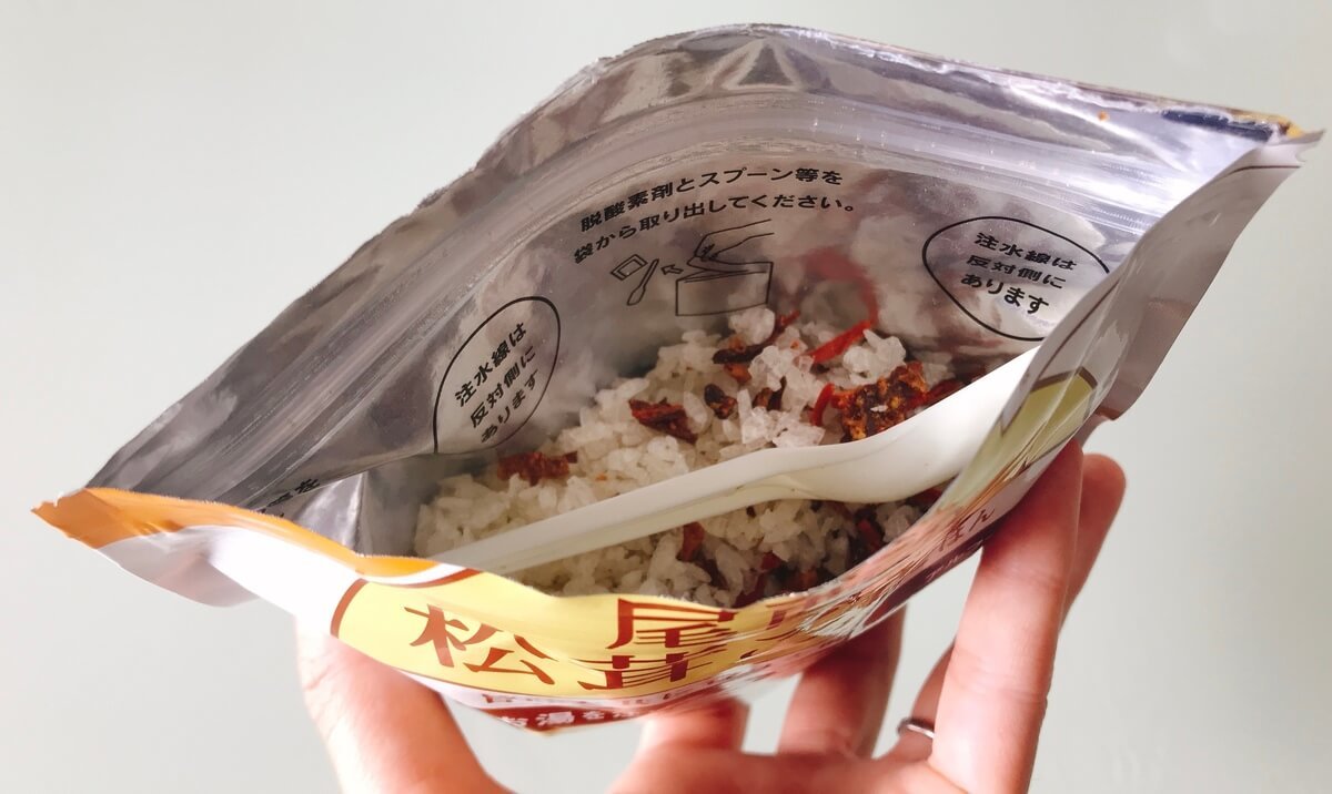 このような感じで中にスプーンも入っているので、水さえあればとこででも食べられるのは大きな利点ですよね。