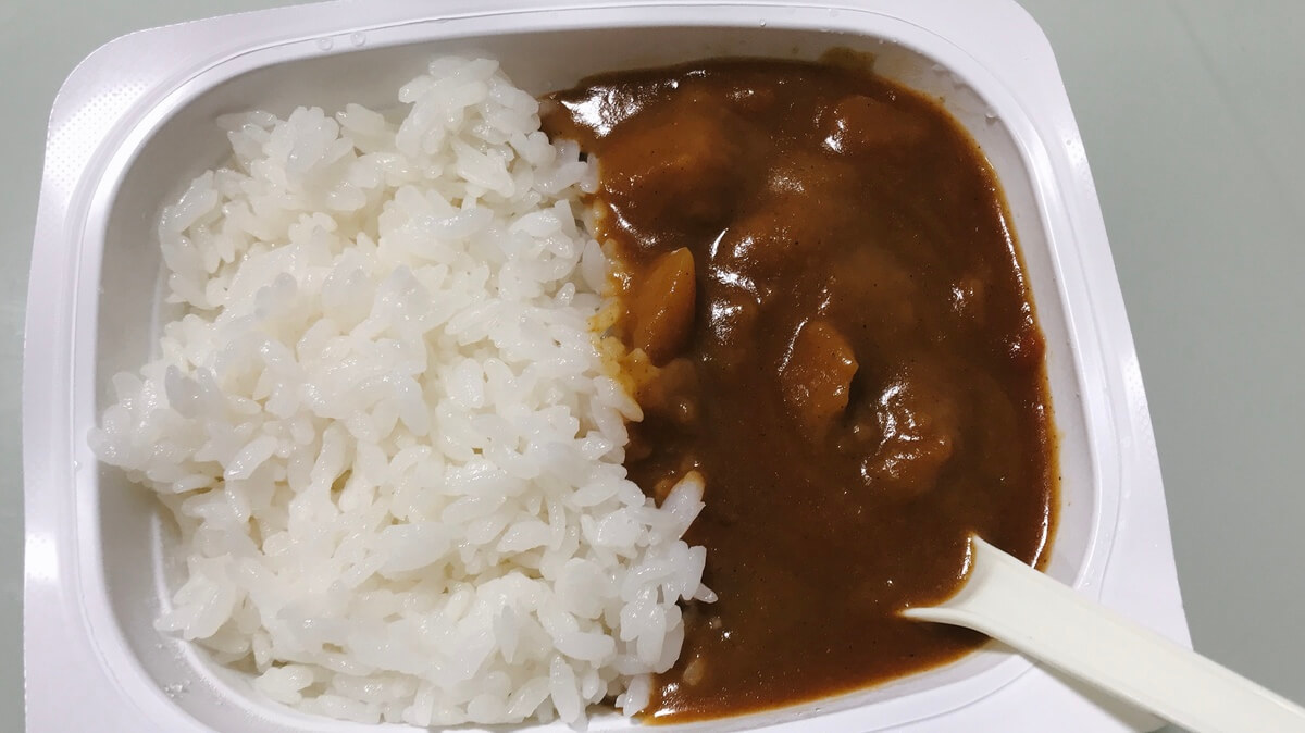 カレーは器付きのご飯の方がそのままかけて食べられるし、ふわふわご飯がいいだろうとスーパーで3パック433円(税込)で購入したさとうのご飯を用意していたのですが、停電を想定して行動していたので電子レンジは使えない。