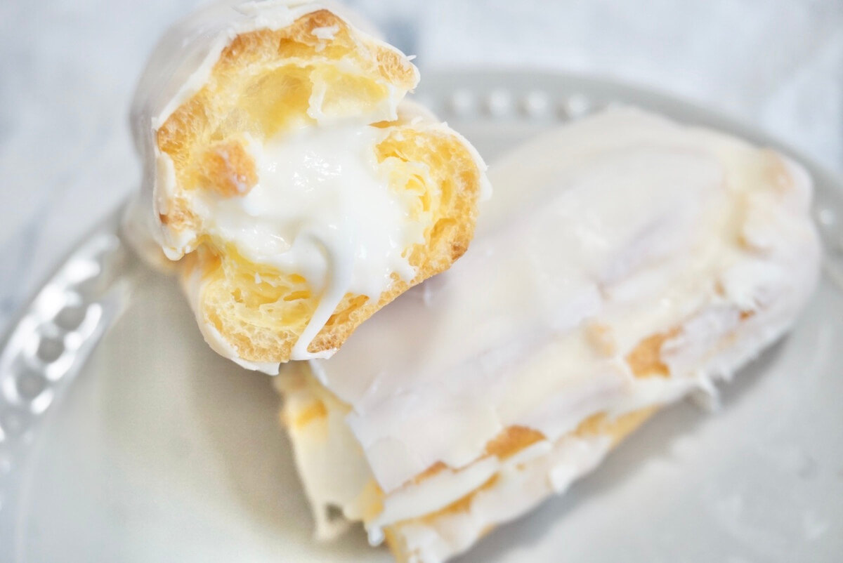 真っ白なミルククリームがとろーりとのびるのが特徴のエクレアです。