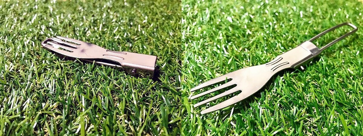 こちらのフォークもステンレス。とてもしっかりしているから熱い焼き肉や麺類も安心。さらには折りたたんでコンパクトになるから収納も楽にできますね。