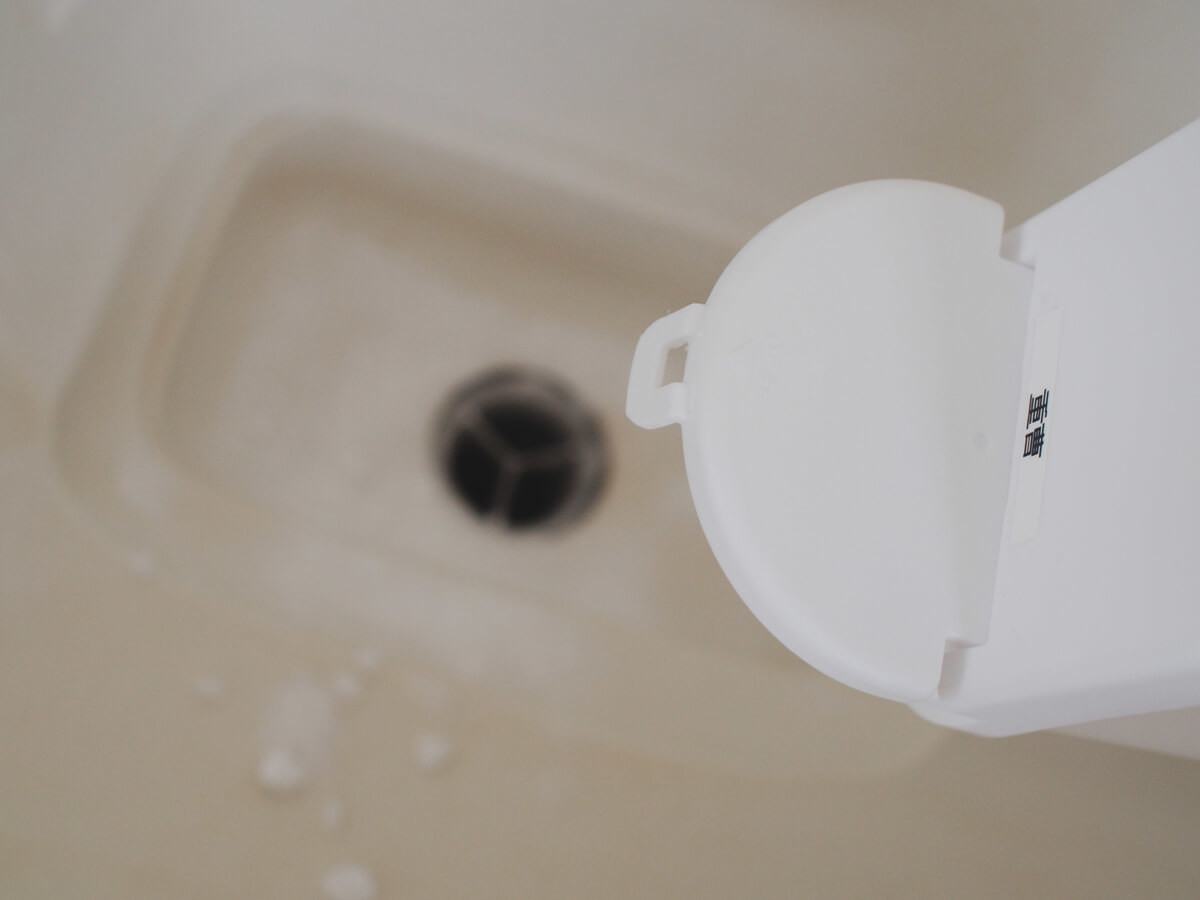 まずは重曹(約大さじ2)を排水口にまきます。