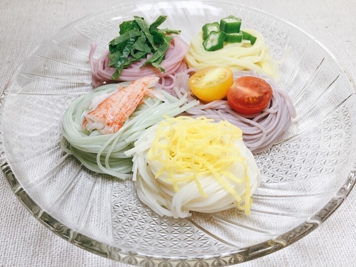そうめんの色とトッピングの色を考えるのが楽しい!