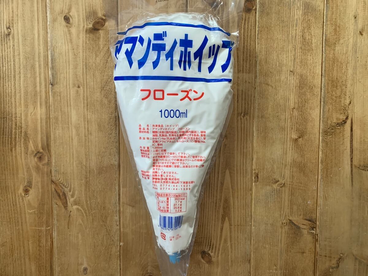 近所の業務スーパーで取り扱っていた「アマンディホイップ」は税抜き258円でした。冷凍なのですぐに使用しない時は冷凍庫にしまって置けます。