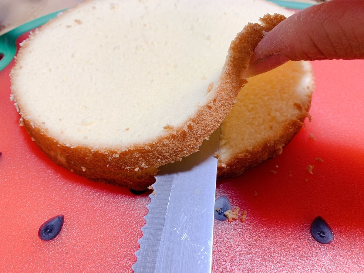 こちらはスーパーで購入したスポンジです。お値段は498円でした。自分でスポンジを作りたくないので毎回大活躍します(汗)。時短ですね。